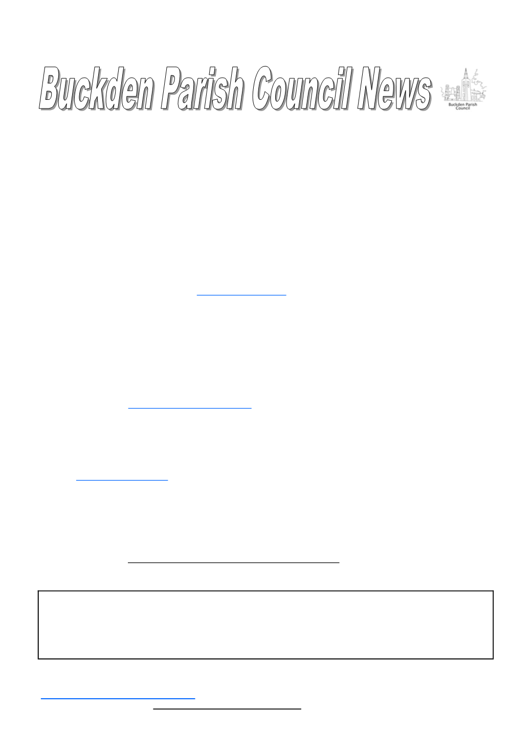 Any questions or comments on this report can be addressed to the Parish Clerk John Chase, Clerk to Buckden